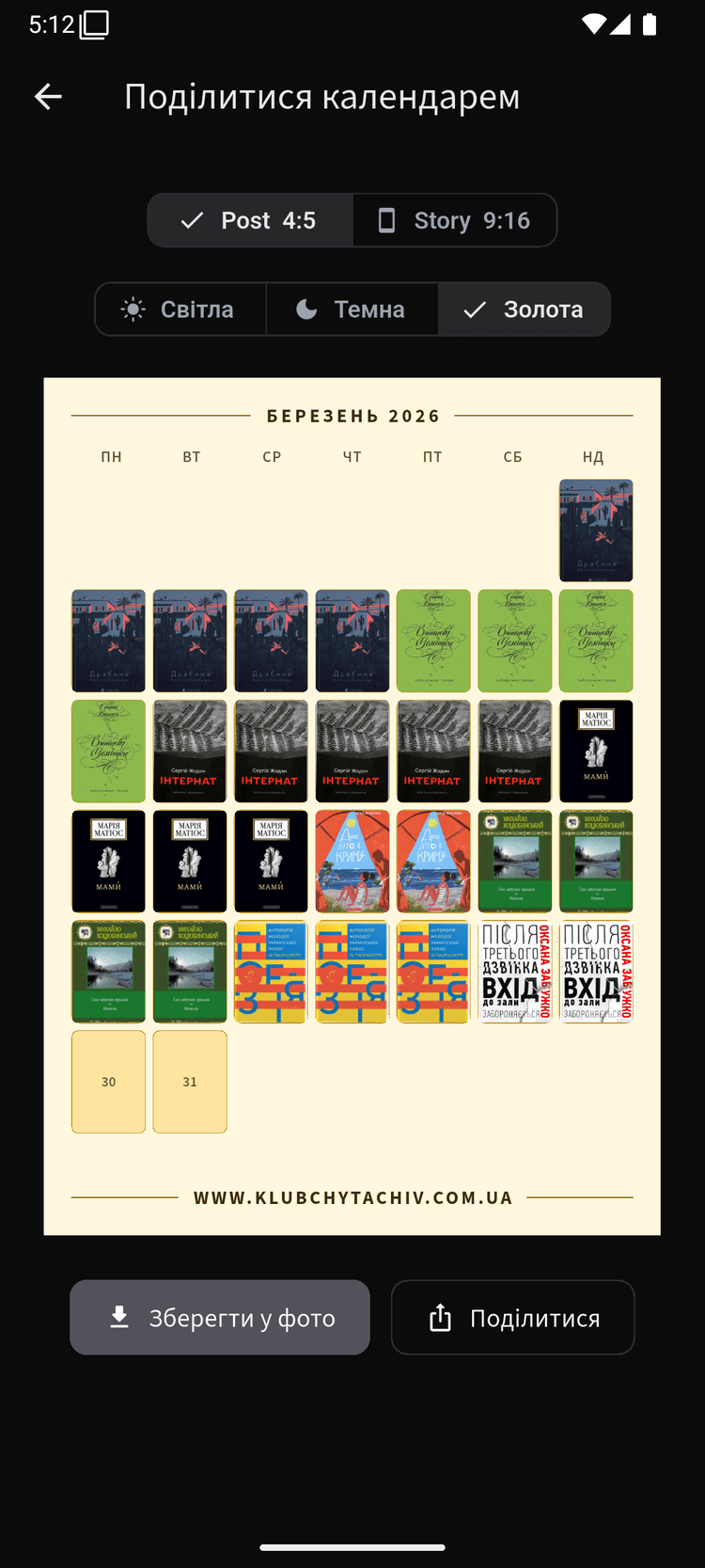 Кожен день читання автоматично відображається в місячному огляді.